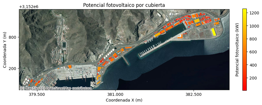 Nuestros primeros pasos empezaron realizando en 2024 un estudio riguroso de la capacidad de producción fotovoltaica del puerto de Santa Cruz de Tenerife, determinado que tan sólo con las cubiertas disponibles se podía instalar una potencia fotovoltaica aproximada de 23,86 MW, mientras que en aquel momento sólo éramos capaces de detectar una potencia instalada de 893,73 kW.